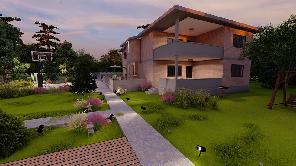 1,5 dönüm arazide konumlanmış 340 m² inşaat alanına sahip müstakil girişli 2 katlı villa tasarımı